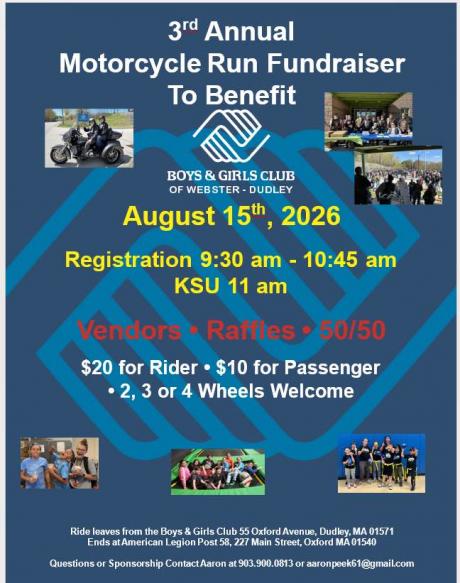 *Ride starts at the Boys and Girls Club of Webster - Dudley and ends at American Legion Post 58*